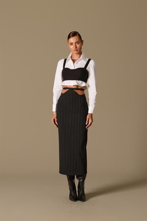 City Vibes Bel Detaylı Maxi Boy Çizgili Etek Siyah, hem rahatlık hem de stil sunan yüksek kaliteli bir moda ürünüdür.