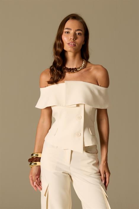 Carrie, heykelsi yakası ve kusursuz formuyla sofistike bir zaraet sunuyor. Minimal detayların gücüyle öne çıkan bu parça, tek başına bile başlı başına bir stil ifadesi. Onu tamamlayan Star Cargo pantolon ise klasik kargo çizgisine couture bir dokunuş katıyor. Birlikte giyildiğinde modern şehir kadınının hem gündüz hem gece için vazgeçilmez ikilisi haline geliyor.