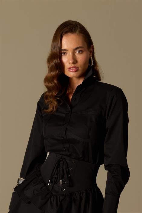 Luna Line 100% Cotton Stitched Shirt Black (26W2007)