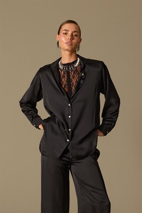 İpeksi dokunuşuyla zarif ışıltı sunan bu saten gömlek, zamansız şıklığın modern yorumu. Düğme detaylarıyla klasikleşirken saten kumaşın akışkanlığı ten üzerinde lüks bir hafiflik bırakıyor. Aynı kumaştaki pantolonuyla takım halinde kullanıp sofistike bir görünüm yakalayabilir ya da jeanlerle şehirli bir kontrast oluşturabilirsiniz.